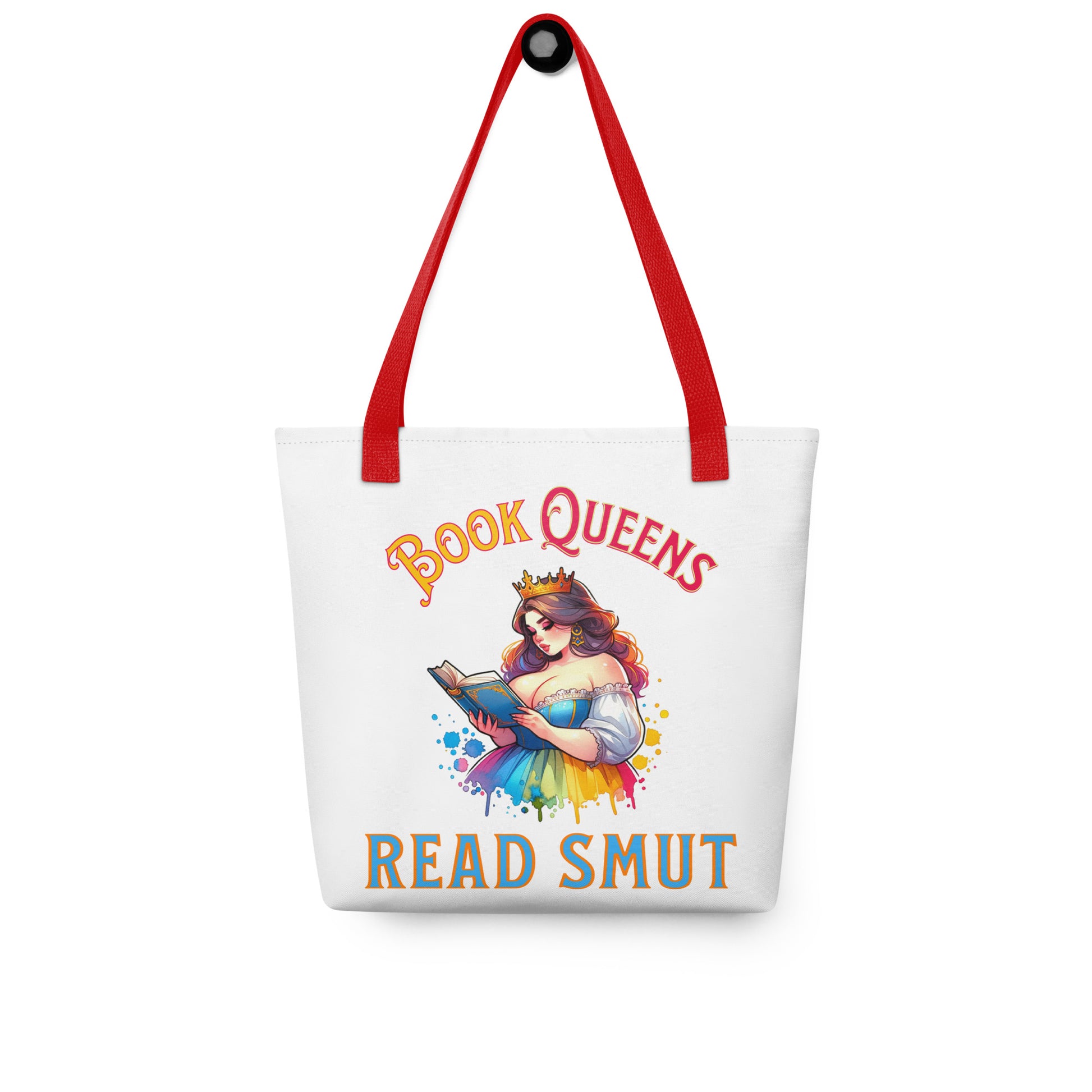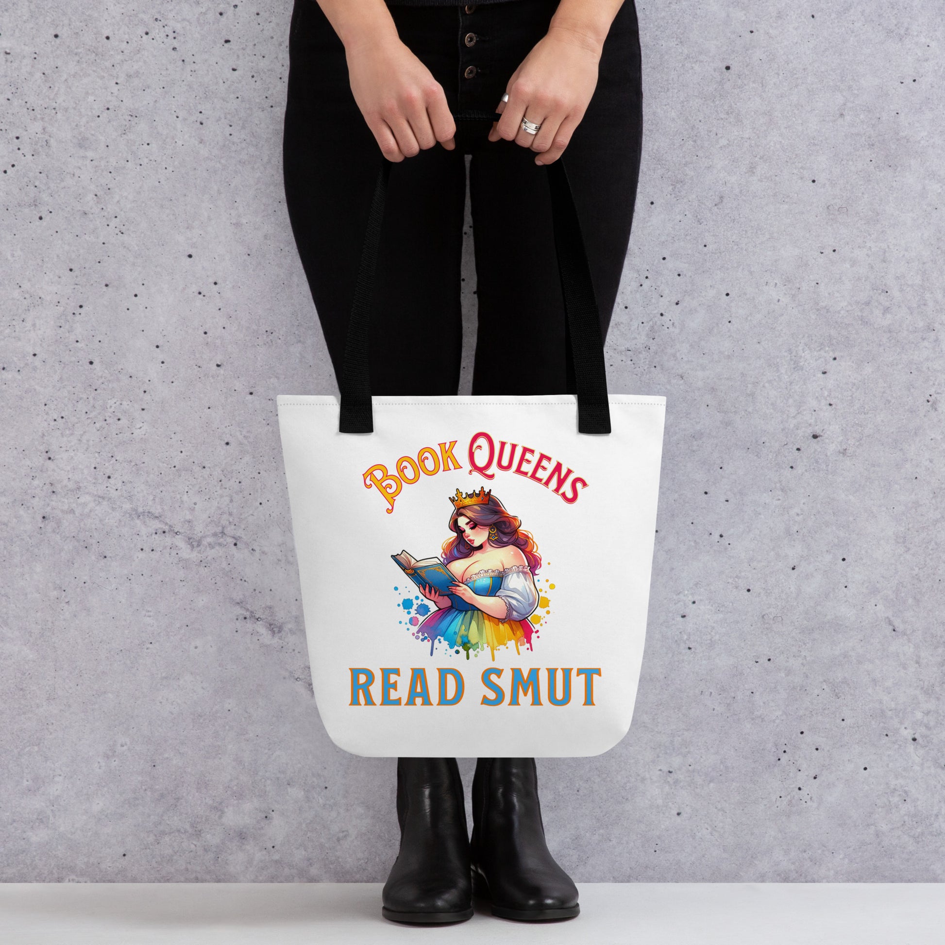 Join the Book Queens in showcasing your love for reading with this stylish tote bag! With the bold statement "Book Queens Read Smut", you'll inspire others to dive into the amazing world of literature. Perfect for carrying your books and showing off your passion, get yours today and join the book-loving community!